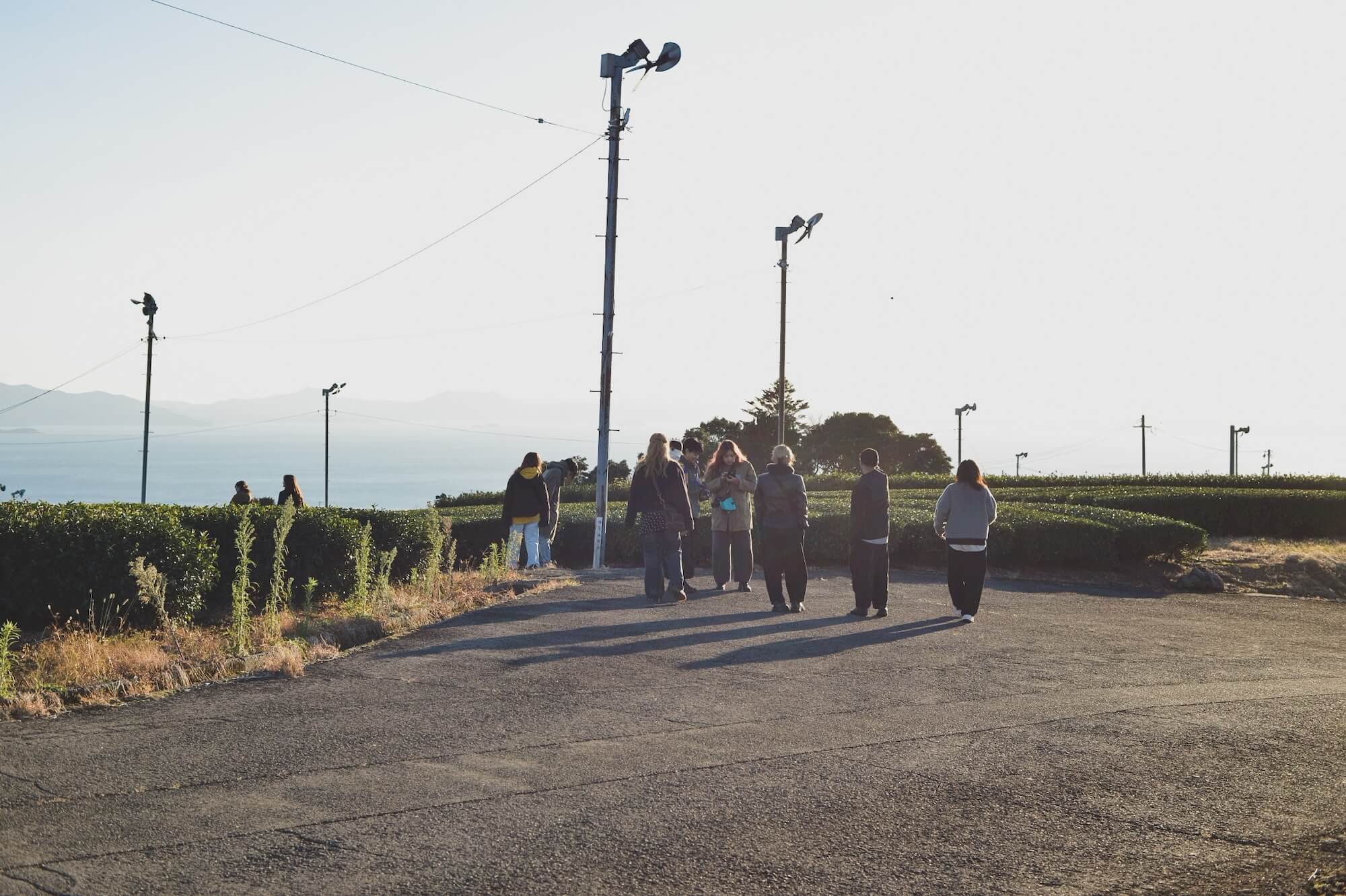 学生さんたちは、ただ風景を見るだけでなく、自分なりの視点で風景を切り取ろうとしていました。写メを撮ったり、茶畑越しに映る大村湾の“色の変化”を何枚も記録したり、「自分たちが風景の中でどう構図に収まるか」を試しながら撮影している姿もありました。東彼杵の風景が、彼女たちの中に“自分の視点”として刻まれていく様子が、とても印象的でした。