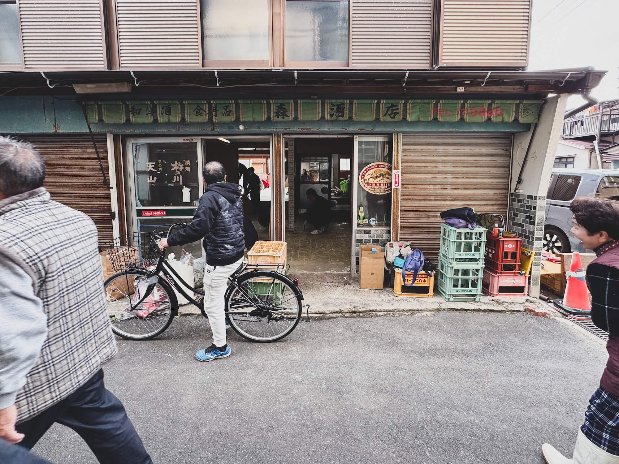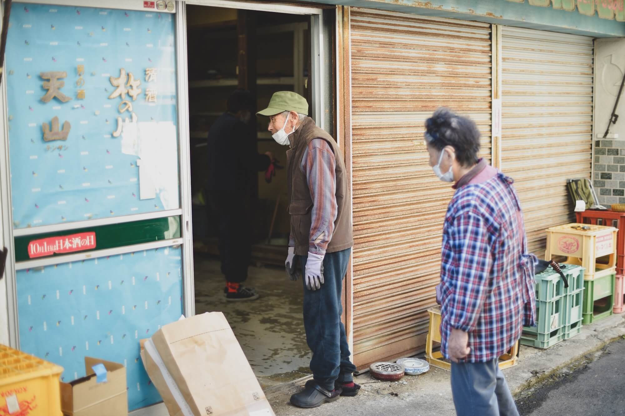 すると想像を超えて普段は姿を見ない多くの地域の方が、学生さんたちの作業を“見に来る”のです。「学生さんね〜? 」「どっから来たとね〜?」「ここは昔、よう賑わっとったとよ」「角打ちで飲みよったもんねえ」「昔の千綿は、人の行き来が多くてね」「森酒店の“いちろうやん”(私の曽祖父、森一郎)は太っ腹で有名やった」「タコを持っていったら買ってくれよったけん、小遣い稼ぎになったとよ」さらに、昔の祇園祭やカラオケ大会の話に、子どもの頃の森少年のいたずら、地域の助け合いのことなど、記憶が連鎖するように語ってくれました。