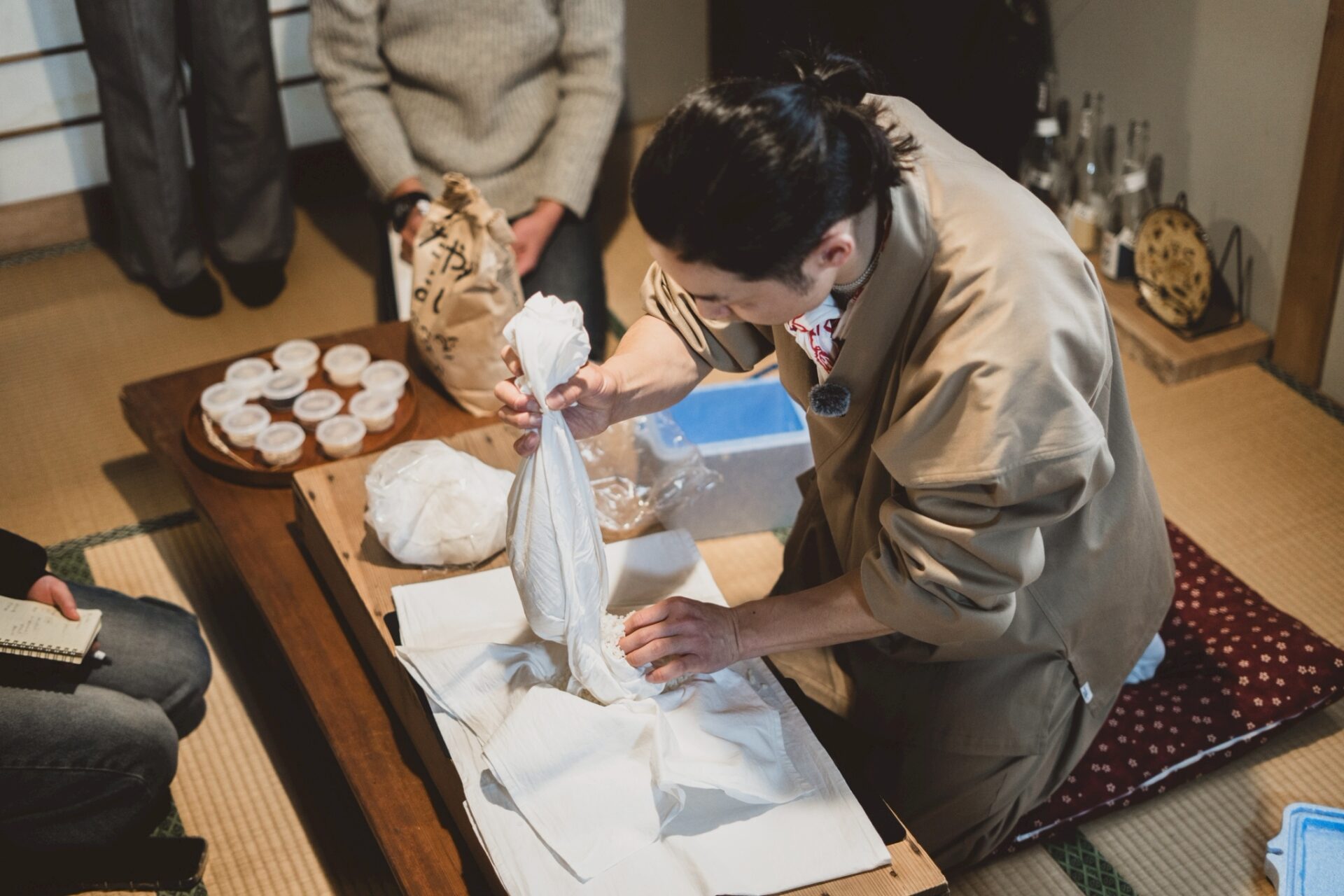日向さんが何度も口にしていたのは、「麹は、急がせないほうがいい」という言葉だ。それは技術的な注意点というより、向き合い方を示す言葉として、静かに場に残っていた。この日の背景には、日向さんが師と仰ぐ和菓子職人・原和志氏の考え方がある。原氏が主宰する日本茶文化研究 草伝社で受け継がれてきた姿勢は、「うまくやる」ことよりも、「見続ける」ことに重きが置かれている。麹は、生きている。
