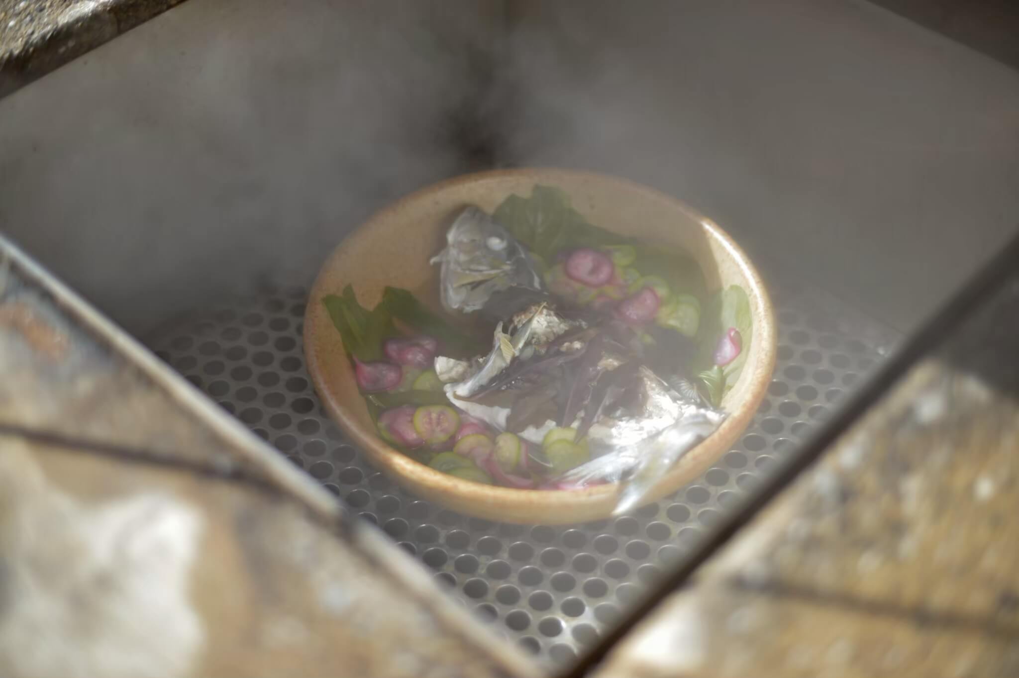 漁から戻ると、その日に獲れた魚を持ち帰り、調理が始まります。蒸気家の蒸気窯では、シンプルな蒸し料理がつくられます。素材そのものを引き出すための、最小限の調理。