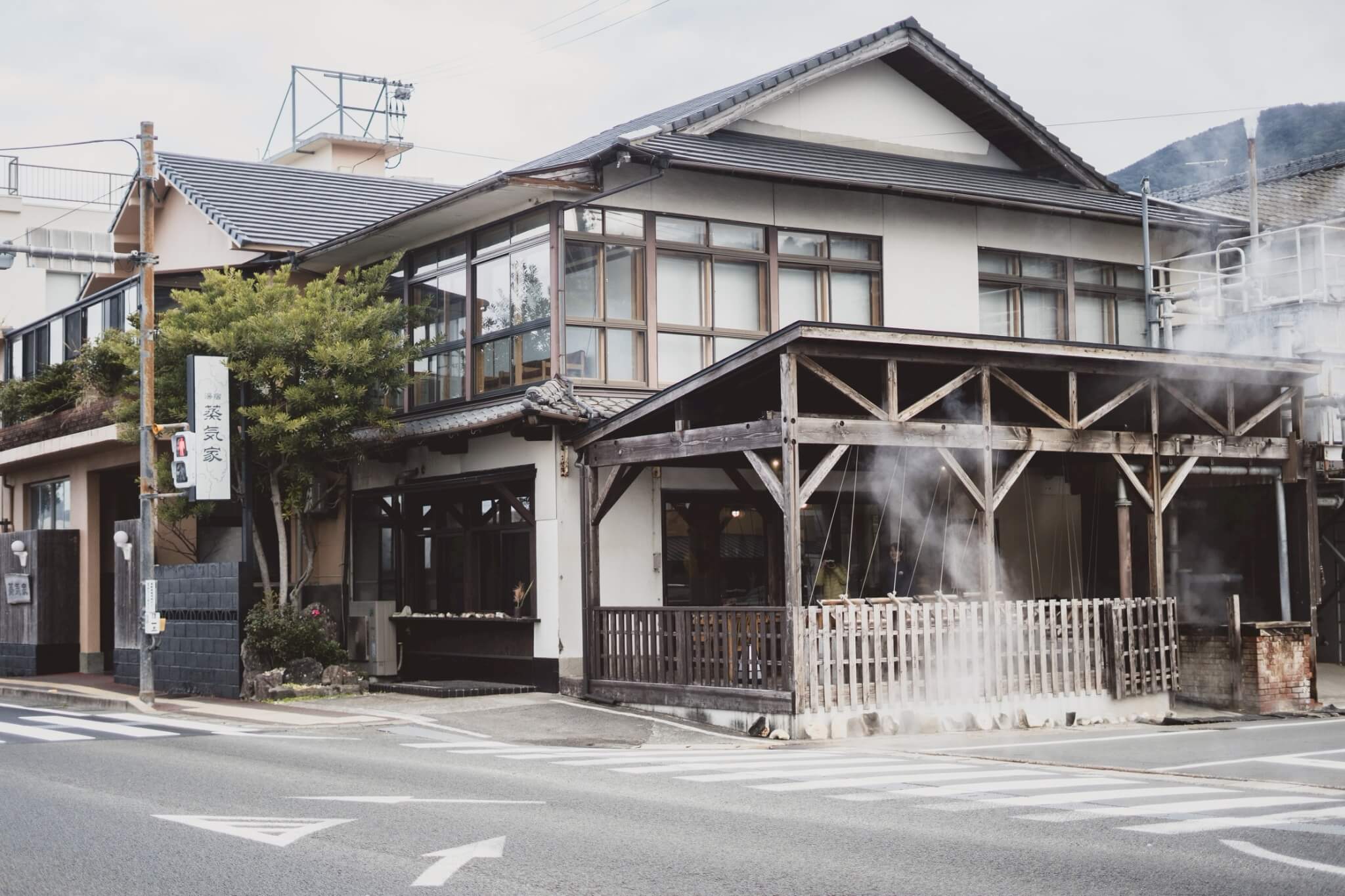 湯気が、まちのあちこちから立ち上る。長崎県雲仙市・小浜温泉は、地面の奥から噴き出す熱とともに、人々の暮らしが営まれてきた土地です。道を歩けば、側溝や岩の隙間から白い湯気が立ちのぼり、温泉が特別なものではなく、日常の延長線にあることを教えてくれます。火山活動によって生まれた地形、豊富な温泉、そして橘湾へとひらけた海。そのすべてが折り重なり、雲仙ならではの時間の流れをつくっています。山と海が近く、自然の成り立ちが生活と直結している土地です。今回の長崎鶴亀屋・雲仙編の舞台となったのは、小浜温泉にある「蒸気家(じょうきや)」です。
