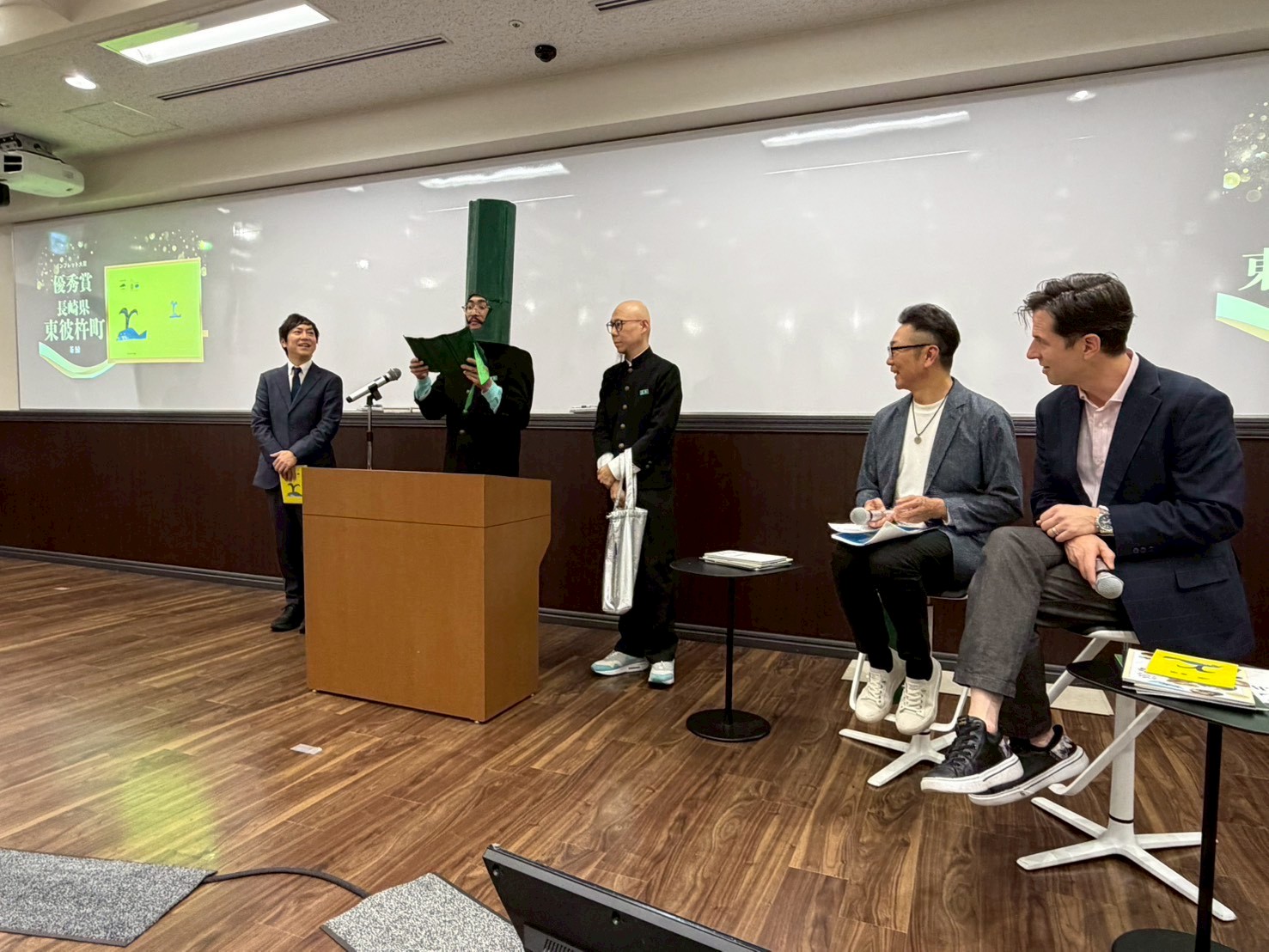 ある日、役場から一本の連絡が届きます。ちょうど冊子が町に馴染み始めた頃、地域プロモーションアワード・地域活性化センターの「ふるさとパンフレット大賞」にエントリーされていた「茶鯨」が、2025年の優秀賞を受賞したという連絡です。