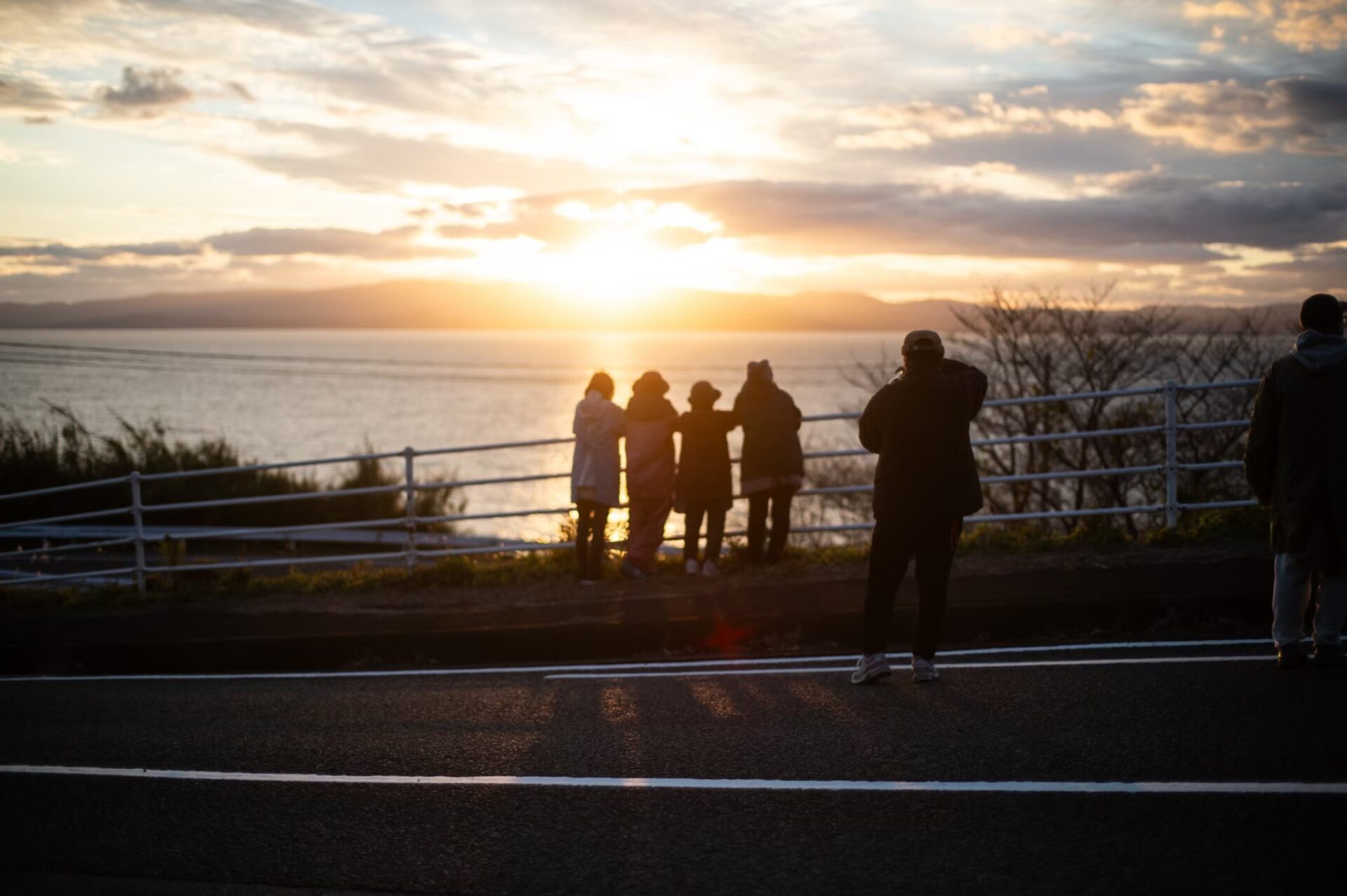 なかでも印象的だったのは、一瞬で沈む夕日が最も美しく見えるタイミングに合わせて撮影を行った場面です。ほんのわずかな時間を逃さないように準備を整え、光が差し込む瞬間を静かに待つ。その時間はどこか緊張感を帯びながらも、同時に穏やかな期待に満ちていました。「当日の天気がどうか晴れてくれますように」、と誰もが心のどこかで願っていたことも、今となっては懐かしい記憶です。そして、その夕日を収めた瞬間をもって、長丁場の撮影は静かに幕を下ろしました。そうした準備や長時間の撮影にも関わらず最後までパワフルな笑顔で過ごしてくださった町の方々があったからこそ、冊子の中に流れるやわらかな光や空気感が生まれたのかもしれません。裏側にあった静かな時間までもが、今ではこの冊子を形づくる大切な一部のように感じられます。